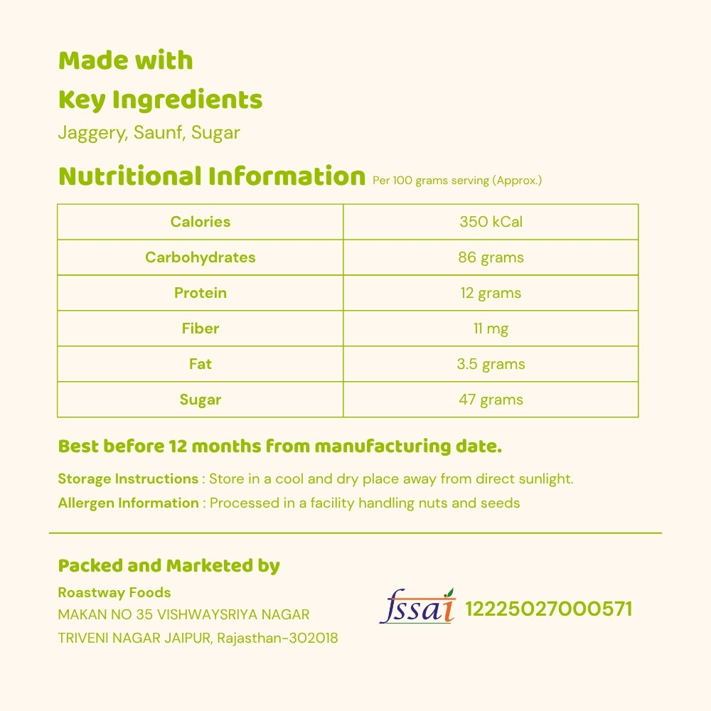 Simple, nostalgic, and refreshingly sweet — Roastway Gud Saunf brings back the classic Indian after-meal ritual in its cleanest form.