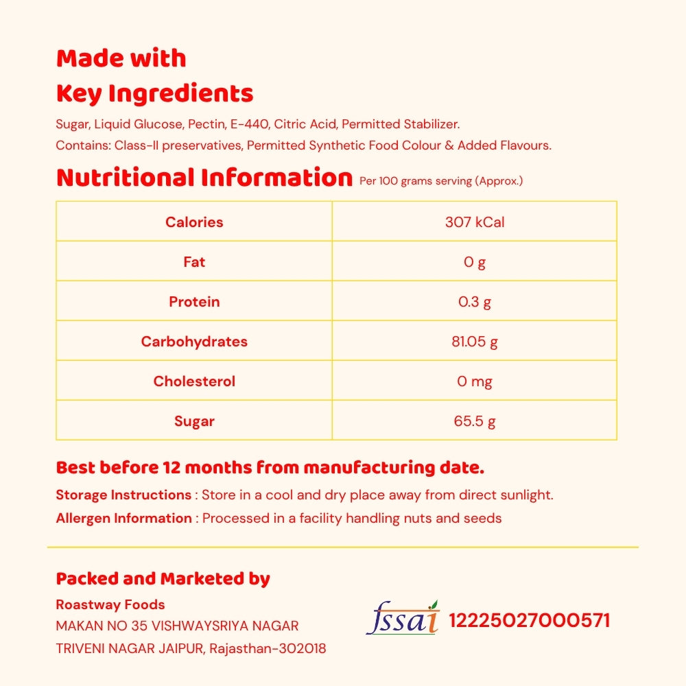 Enjoy a burst of colour and taste with Roastway Fruit Candy, a sweet, fruity and refreshing mouth freshener made with clean, quality ingredients.